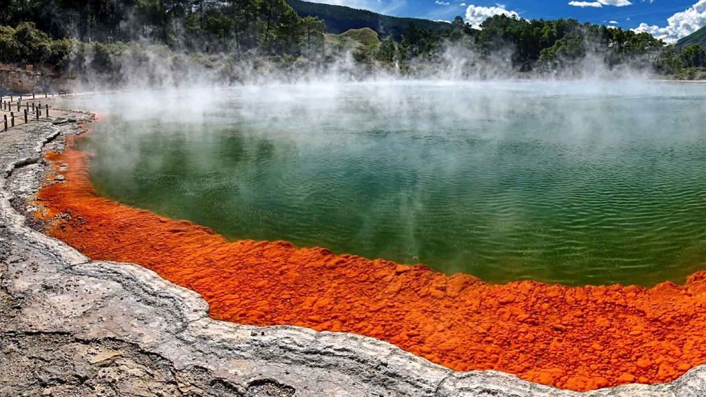 Wai-O-Tapu Thermal Wonderland lived up to its name. The Champagne Pool shimmered with shades of emerald and orange, while the Devil’s Bath radiated a bright acidic green. I followed wooden walkways that wound through the geothermal field, pausing often to just watch — mesmerized by the unpredictable burps and rumbles beneath my feet.